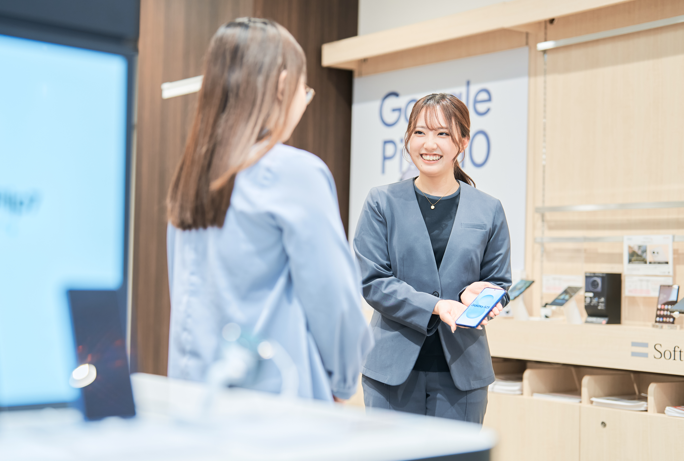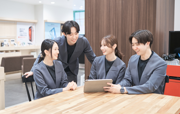 ―― 仕事のやりがいを感じる瞬間は? 一番は、やはりお客様から直接「ありがとう」という言葉をいただけることです。 スマートフォンの設定や使い方の困りごとを解決し、最適な提案をすることで、お客様の毎日が少し便利になるお手伝いができることがお仕事の大きな魅力です。また、最新の機種やサービスにいち早く触れ、知識を深めていけることも、日々刺激になっています。 ――入社して良かったことは? 働く環境は、入社した時からずっと良かったと感じています。 特に人間関係が温かくて、先輩方は私が理解できるまで何度も丁寧に教えてくれました。仕事以外でも気さくに声をかけてくれるので、すぐに職場に馴染むことができましたし、困った時に助けを求めやすい雰囲気なのが有り難かったです。また、福利厚生もしっかり充実していると思います。 ―― これから入社する方へのメッセージをお願いします! 最初は「自分にできるかな」と不安もあるかもしれませんが、周りの先輩が必ずサポートしてくれるので安心してください。 同期とも研修などを通じてすぐに仲良くなれると思います。私たちと一緒に、楽しみながら一緒に頑張りましょう!
