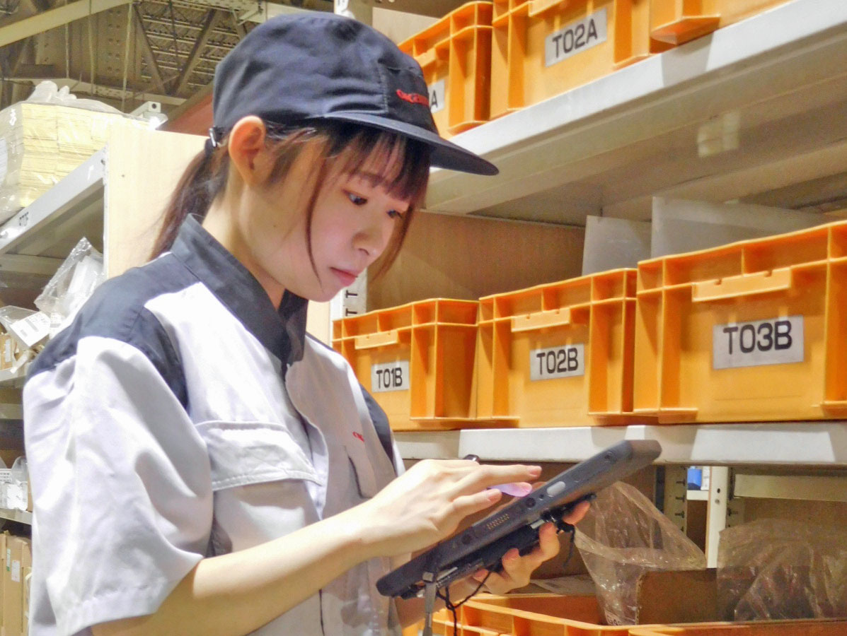 私の現在の仕事は、部品の出庫と、ビスやナット、塗料・接着剤などの発注です。 入社1年目の11月までは製造工程を担当していたので、新たな仕事をすることに不安もありましたが、上司の丁寧なサポートもあり、できる仕事が増えていった時は嬉しかったです。 また、現場の視点を知っているからこそ「後工程はお客様」を意識して、作業者が分かりやすい配置の出庫を心掛けています。 これからも自分の仕事に責任を持って取り組んでいきたいです。