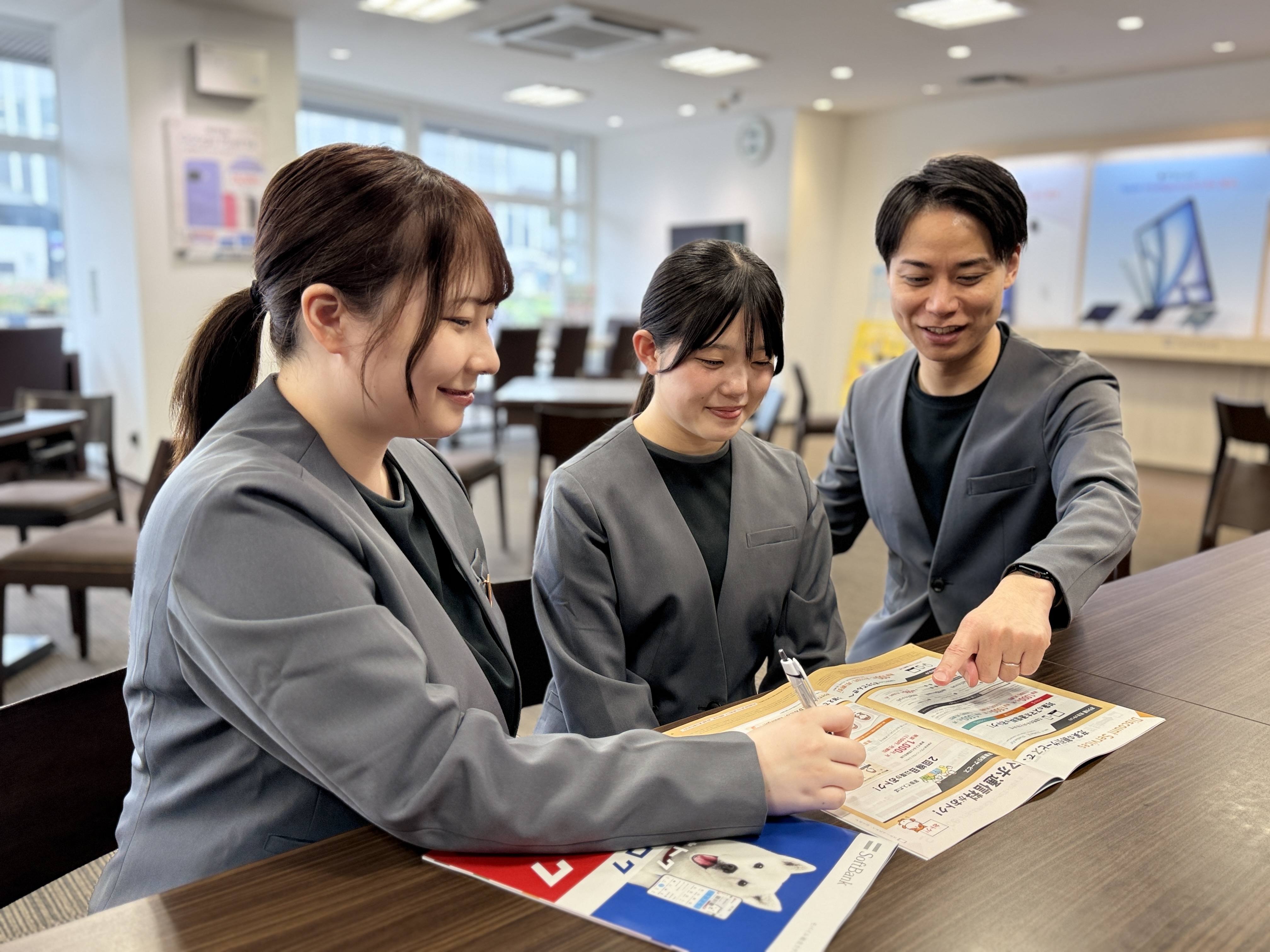 大手キャリア( docomo/au/SoftBank /楽天モバイル) の一次代理店として、キャリアショップ運営を行っています。 ケータイ・タブレットの販売や料金プラン・サービスのご案内など お客様の“便利で豊かな生活スタイル”をプランニングするお仕事です! キャンペーンの時にはお客様に喜んでいただける様に、お祭りの様にお店を楽しい雰囲気にする事も♪ 仕事に慣れてきた頃には、スタッフのマネジメントからPOP作成、イベント・キャンペーンの企画立案、商品発注、店舗レイアウトの企画など時代と流行の最前線に立ち活躍していただきます。 お店のスタッフ全員で、元気の良いチームとして仕事を進めていきます。 来てくださったお客様をみんな笑顔に変えられる、地域になくてはならないショップをラネットは目指しています。 自信を持ってお仕事が始められるよう、いつでも相談できるトレーナー研修やプログラムも充実していますので、安心して学んでいく事ができます。 また、対象の資格に合格する事で毎月のお給料は最大7万円アップします。 仲間を大切に、楽しく働きながら、自分を成長させたいあなたにはピッタリの環境です。 <一つでも当てはまる方★向いています!> □スマホが好き!ワクワクする! □人と話すのが好き♪ □友達の話を聞くのが得意! □笑顔をよく褒められる◎ □新しいモノが好き* □地域の方々の役に立ちたい☆ □部活やアルバイトで、チームで頑張った経験がある★ そんな皆さんにピッタリで、若くて流行に敏感だからこそ『すぐに活躍』できるお仕事です。 ーーー ✔ギャラリーは今後沢山更新します◎社員の表情をたくさん見ていただきたいです♪ ✔社員の男女比は6:4で、ほぼ半々です('ω')ノ ✔
