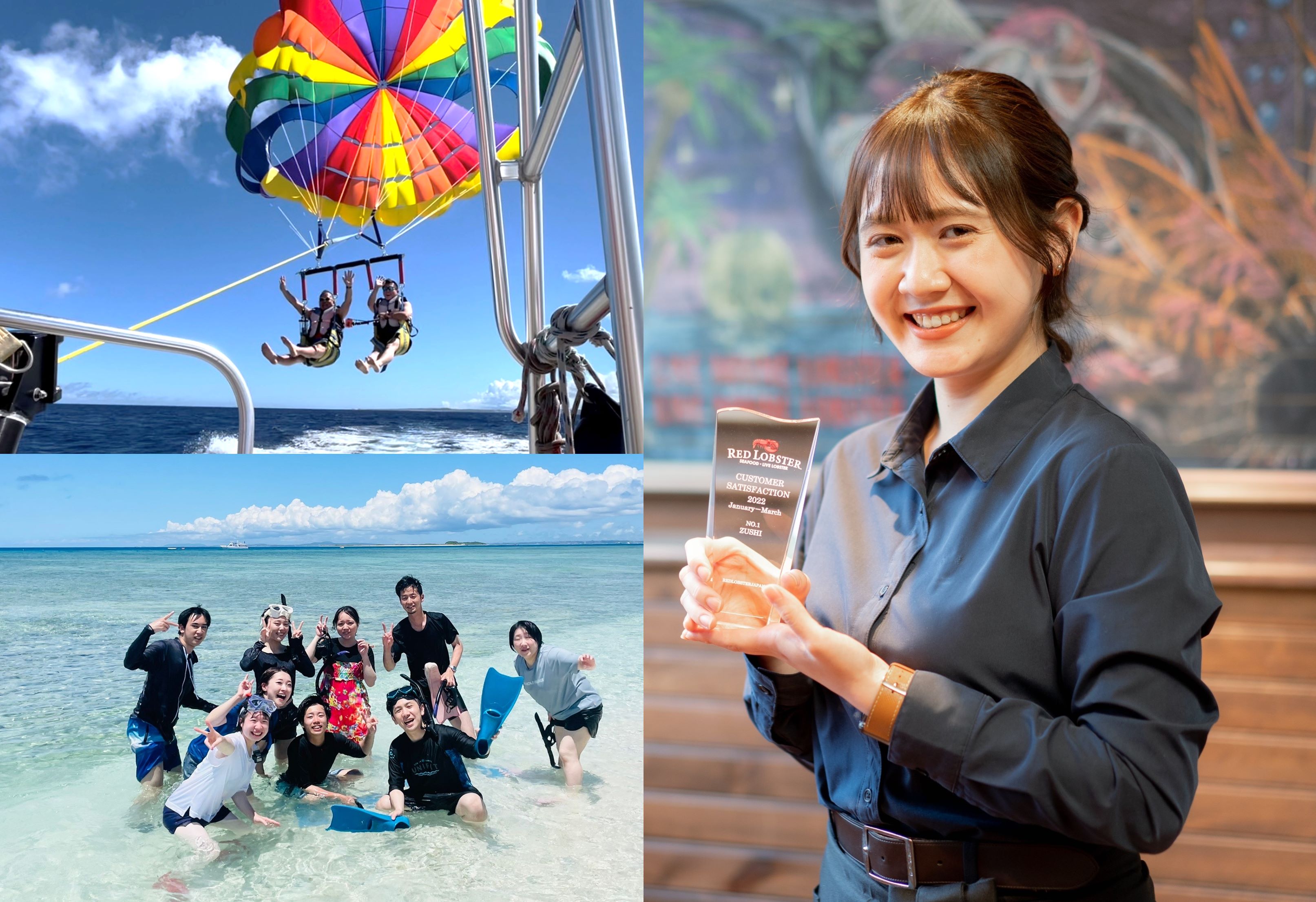 【入社動機】 学校から紹介された企業の中で、レッドロブスターの写真に「笑顔」が一番多く写っていたことが印象的でした。食事体験会に参加し、お台場店のきれいな景色の中で、楽しそうに働く先輩たちの姿を見て「ここで働きたい」と強く感じました。料理経験がなくても丁寧に教えてもらえると聞き、不安よりも期待のほうが大きくなったことが入社の決め手です。 【仕事とやりがい】 働く中で一番心に残っているのは、テーブルを拭いていたときにお客様が「こんなおいしいご飯を食べられたら、明日からも頑張れるな」と話していたのを聞いた瞬間です。自分たちの仕事が、お客様の気持ちを前向きにできていると実感でき、飲食の仕事の価値とやりがいを強く感じました。 【成功談、失敗談】 入社当初はロブスターに触ることが怖く、接客の距離感もわからず失敗しそうになることが多くありました。しかし先輩が「急がなくていいよ」と声をかけてくれ、一つずつ丁寧に教えてくれました。今では、迷ったときは必ず確認するように意識。その習慣が失敗を防ぎ、自信につながっています。 【会社に入ってよかったと思う点】 職場はとても温かく、スタッフ同士の自然な「ありがとう」が飛び交っています。家賃補助などの制度もあり、生活面でも安心して働けるのが魅力です。高校卒業後すぐでも、しっかり成長できる環境が整っている会社だと実感しています。