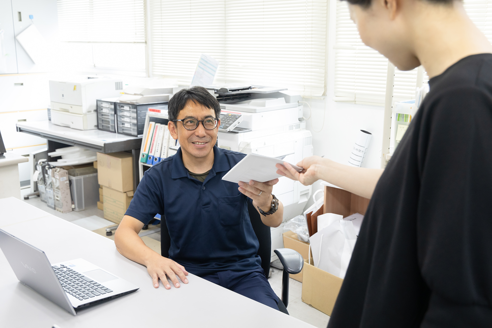 お客様から修理依頼のお電話をいただくと、各サービス担当のタブレットにその依頼内容がとぶようになっています。自分の担当しているエリアの依頼件数が多く対応できない場合は、他の社員にヘルプを依頼して対応をすることも。 一人で多くの件数を抱えすぎることがないよう、メンバー間で積極的にサポートし合う環境が整っています。 また、業務は一人で行いますが、メンバーと毎日顔を合わせて話す機会があるため、孤独感はありません。困ったときもすぐに連携して助け合える関係性が築けています。