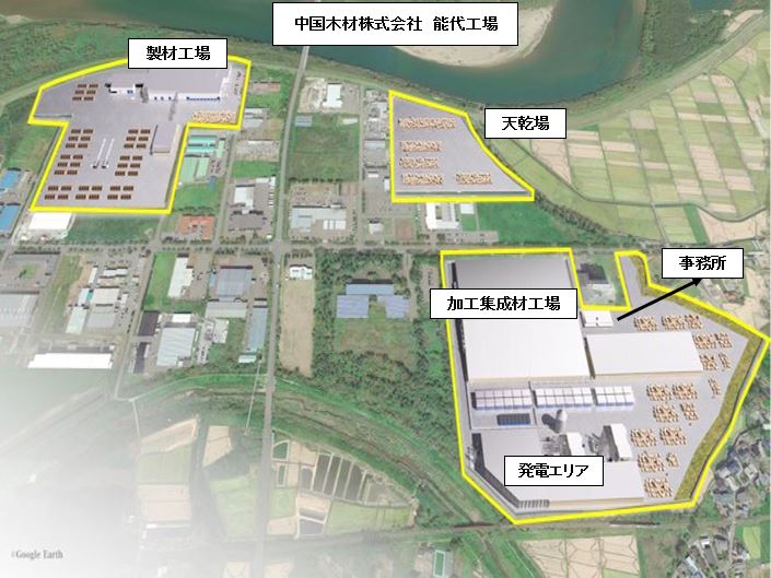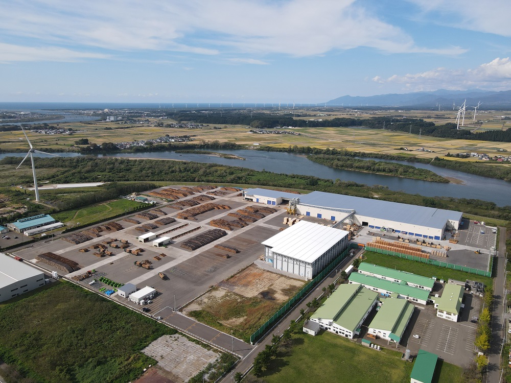 本社が広島県呉市にある日本最大級の木材企業であり、2024年より新設の能代工場稼働中。能代工場は秋田県産杉を使用した集成材製造と売電用大規模木質バイオマス発電を行ないます。