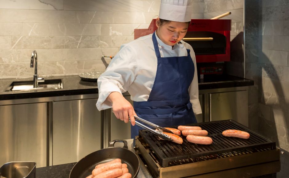■6:30 出勤。朝食ビュッフェのお料理を出します。ソースやドレッシングなどは前日に仕込んでおくことが多いです。 ■7:00 自分が担当している料理をつく作ったり、先輩が担当している料理の盛り付けなどを行ったりします。 ■9:00 朝食のお客様が落ち着いてきたら、追加の料理に対応しつつ、ランチメニューのスタンバイ作業(仕込みなど)を行います。 ■10:00 休憩時間。調理スタッフはお昼の時間帯は忙しくなるので、ちょっと早めor遅めにランチをとります。 ■11:00 ランチタイム。デシャップで料理を仕上げて、サーブを担当する料飲スタッフに渡していきます。 ■13:30 ランチのお客様が落ち着いてきたら、ディナーや翌日の営業に向けたスタンバイ作業も併行して進めていきます。 ■14:30 ランチタイム終了。片付け、衛生作業など。衛生管理マニュアルに則って機器や調理器具をお手入れします。 ■15:30 今日のシフトはここまで。着替えが終わったら退勤します。 ※配属するホテルによりシフトは違います。