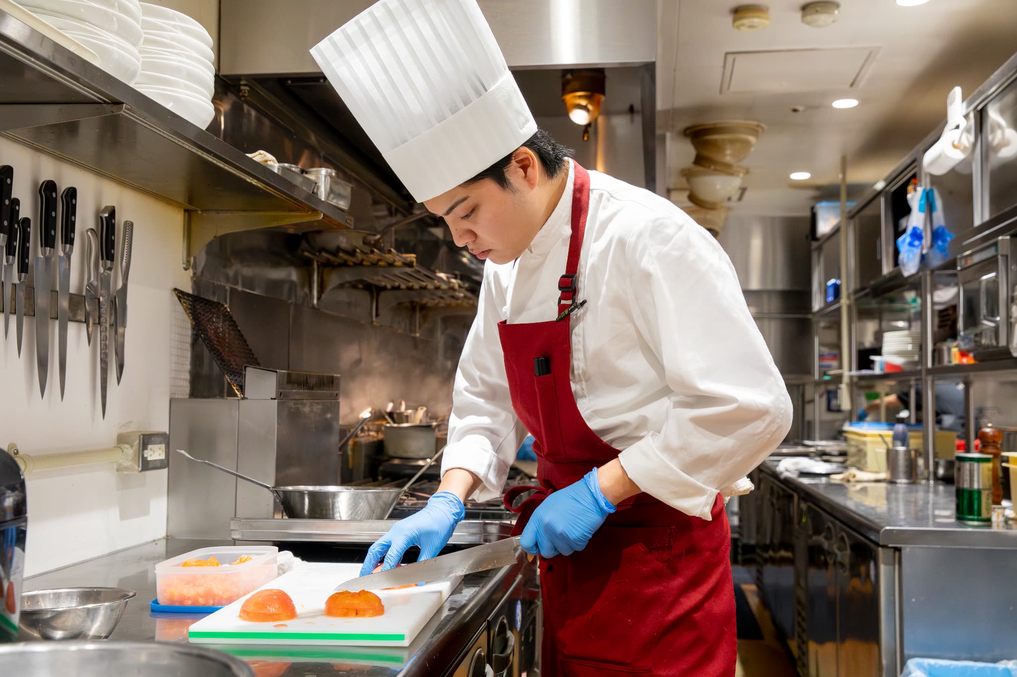 当社で活躍中の調理長たちは、調理人としてのスキルはもちろん、マネジメントのスキルも備えた方ばかりです。 スタッフの中には学生時代の実習で調理長が講師を務めてくれた時に、「ぜひこの人のもとで働きたいと思った」という人も多くいます。 入社後は、洋食ならサンドイッチや前菜、和食なら八寸場などからスタート。 その後、切りもの(食材を切ること)や、火を使う料理などへとじっくりステップアップしていくことができます。 ~業務内容~ ■衛生管理 安心・安全な食をご提供するために、衛生管理マニュアルに則って機器の掃除や調理器具をお手入れ。清潔な環境を保ちます。 ■調理補助~下ごしらえ 野菜の皮を剥いたり、ソースなどを合わせたり、冷凍の材料を解凍したりと、料理で使用する食材の下処理を行います。 ■調理 調理。新人のうちは、前菜やデザート、オムレツやパスタといった比較的取り組み易いメニューから担当することが多いです。 ■発注業務 明日のご予約内容などを念頭に置きながら食材を発注。手袋やキッチンクロスといった備品の管理・発注業務を担当する場合もあります。