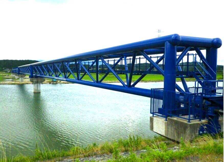 水管橋(すいかんきょう)とは?? 水道管が川を横断する際に用いられる、水道水を対岸の街へ届けるための専用の橋です。 創業以来、配管製造に特化した高い技術力が、こんなところにも活かされています。 1950年に創業した当社は、独自の加工技術により様々な材質・形状・サイズの配管を自社ブランドとして展開し、全国の産業・生活インフラの整備に貢献してきました。また、近年はSDGs事業認定取得、再エネ100宣言参加など、サスティナビリティにも積極的に取り組んでいます。
