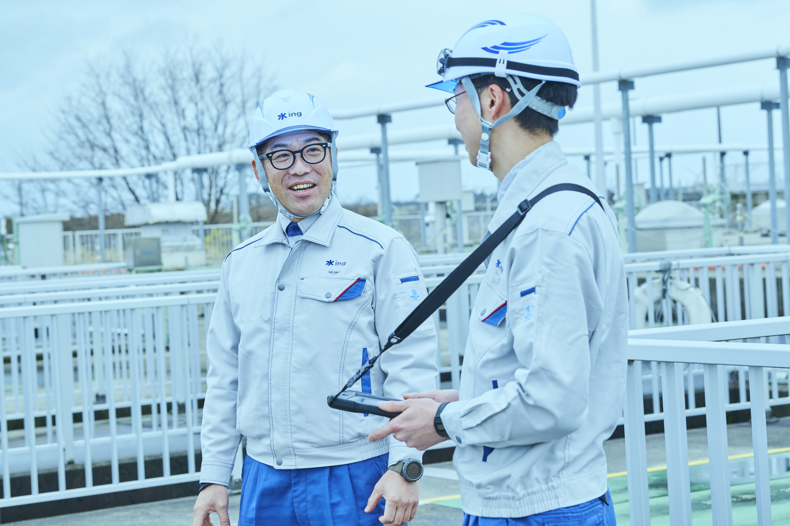 あなたの街で「水のある豊かな暮らし」を支える会社、それが私たち水ing(スイング)です。 水道の蛇口を開けばきれいな水が飲める。 トイレやお風呂の水を、そのまま流すことができる。 普段、当たり前だと思っている安全な水のある暮らし。 実はその「当たり前」を支えている人たちがいます。 飲み水を作る浄水場や家庭の排水を処理する下水処理場など 私たちの生活になくてはならない水を支える施設で水ingのフィールドエンジニアは活躍しています。 人々の生活に必要不可欠な「水」を届けるため、エッセンシャルワーカーとして責任感と誇りを持って日々業務にあたっています。
