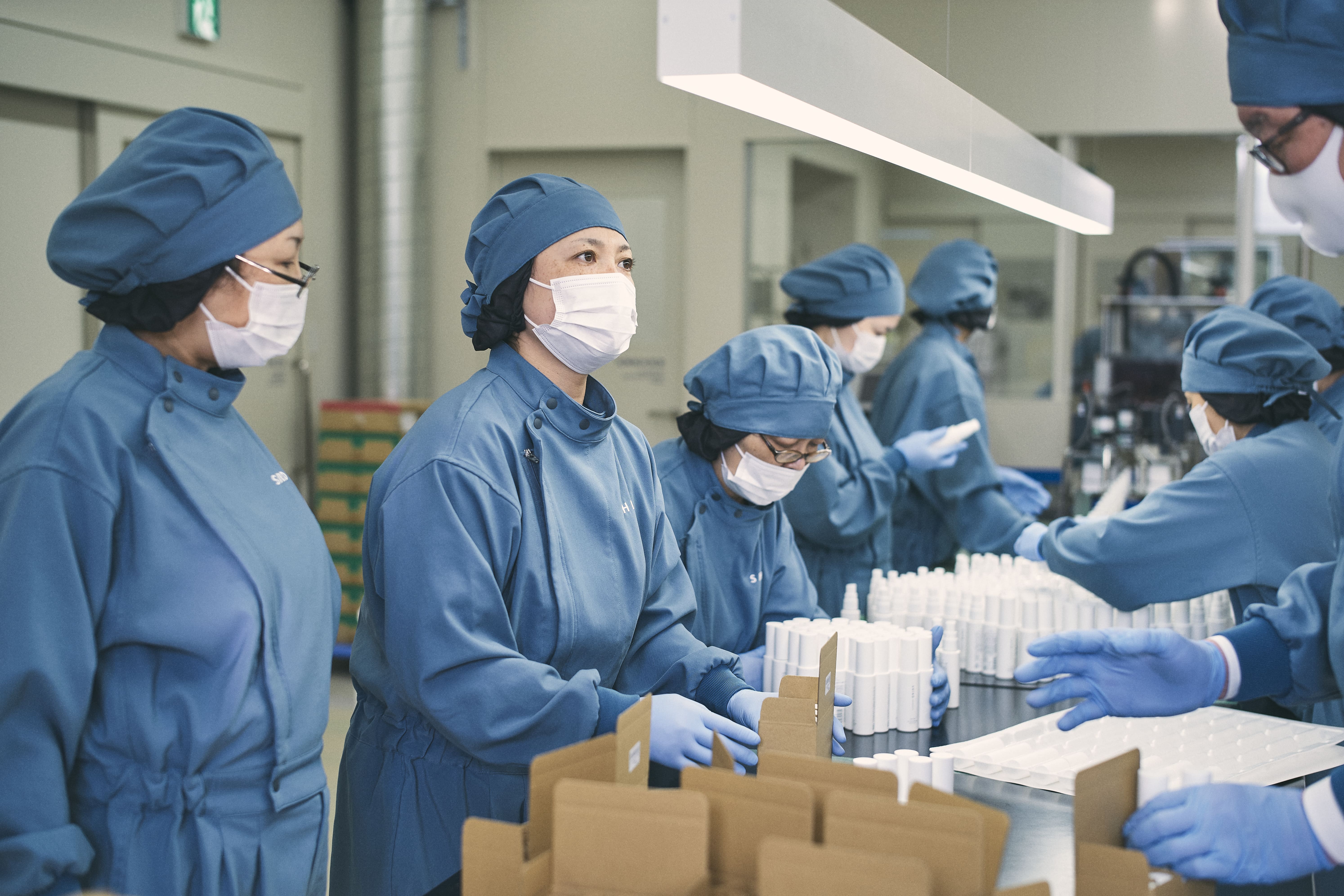 初期配属先となる製造部門には、自然素材を処理する「素材処理」、材料を混ぜ合わせる「調合」、製品を容器に詰める「充填/包装」などのさまざまなセクションがあります。入社後は「充填/包装」を行う製造ラインに配属されます。 製造ラインでは、充填用機械のセッティング・容器に中身を充填する・重さを量る・キャップを締める・箱詰めなどを行います。オードパルファンや化粧水など毎日違う製品を、チームに分かれてつくります。 男性スタッフも各チーム数名ずつ在籍していて、女性が多くはありますが男性でも馴染みやすい環境です。製造部門に高卒で入社したスタッフは男女合わせて、25卒入社4名、24卒入社2名が在籍しています。(全国での高卒採用数は25卒で4名、24卒で6名です) ▼やりがい ・工場はガラス張りで見学できるようになっているので、お客様が笑顔で製品を手に取る様子が中からも見えます。 ・酒かす、米ぬかは手搾りをするなど、素材に触れてものづくりができます。 ▼向いている人 ・チームで何かに取り組みたい人 ・ものづくりに興味がある人 ・シロの製品が好きな人、理念に共感できる人
