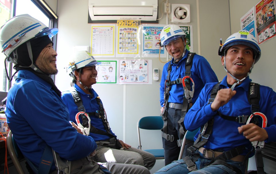 私たちが大切にしているのは、「仲間・ファミリー」のような雰囲気。現在28名のインドネシア人技能実習生も働いており、言語の壁も乗り越えて、みんなで一つの建物を協力して造っています。実習生の中には日本語があまり話せない人もいますが、サッカーやバレー、アニメなどの趣味の話で盛り上がることも多く、ボディランゲージなども交えながら、自然とコミュニケーションが生まれています。 ベテランの職長さんたちは40代〜50代半ば。自分の子どもが小学生〜大学生くらいというメンバーも多く、自分の息子・娘のように接してくれます。また、困っている人がいたら助け合う、そんな人間性を大切にする人たちばかり。業務をわかりやすく丁寧に教えてくれる優しい職長ばかりなので、わからないことは何でも聞いてください。 また、社内イベントも充実。2月にはスノーボード、5月にはボーリング大会、秋には社長が参加するバイクレースの応援ツアー、12月には忘年会など、コミュニケーションの場がたくさんあります。ぜひ、社内のコミュニケーションも楽しんでもらえると嬉しいです。