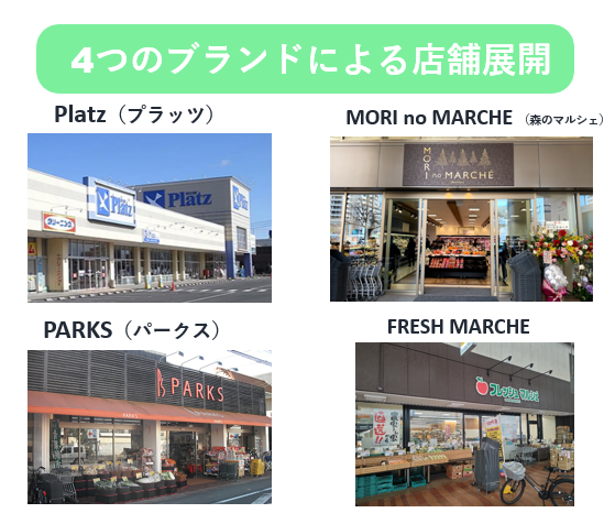 両備ストアカンパニーでは、地域や利用する人のニーズに合わせて、複数のスーパーマーケットブランドを展開しています。それぞれのお店に特徴を持たせることで、さまざまな生活スタイルに対応しています。「プラッツ」は、品ぞろえが豊富な大型店舗として、家族連れなど多くの人が利用しやすいお店です。また、「森のマルシェ」は、都市型店舗として、単身世帯向けの商品や、特別感のある商品を提供するお店として展開しています。 このように両備ストアカンパニーは、ひとつの形にこだわらず、地域の立地や客層に合わせたブランド展開を行っています。これにより、多くの人の生活に寄り添い、地域に必要とされるスーパーマーケットづくりを実現しています。