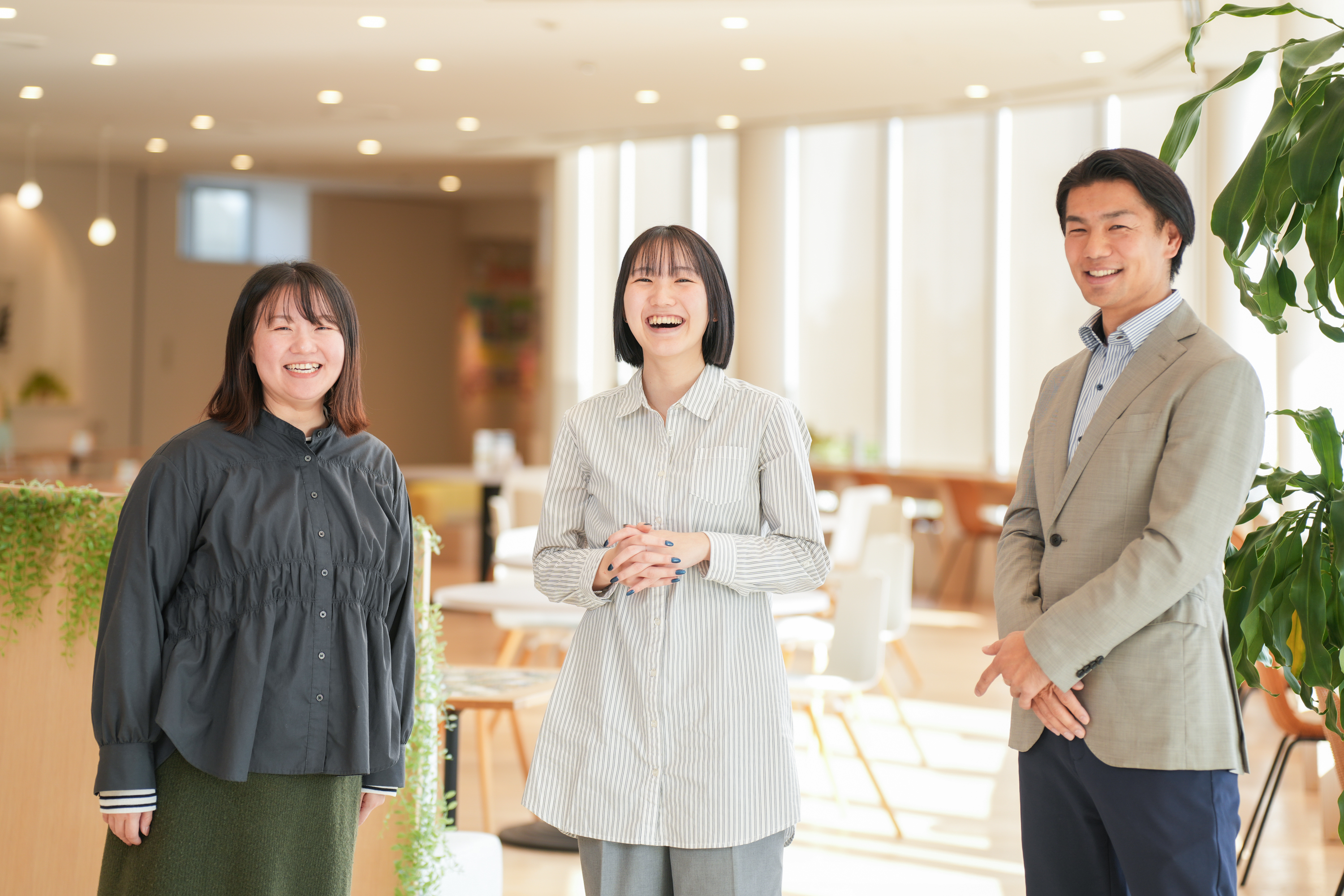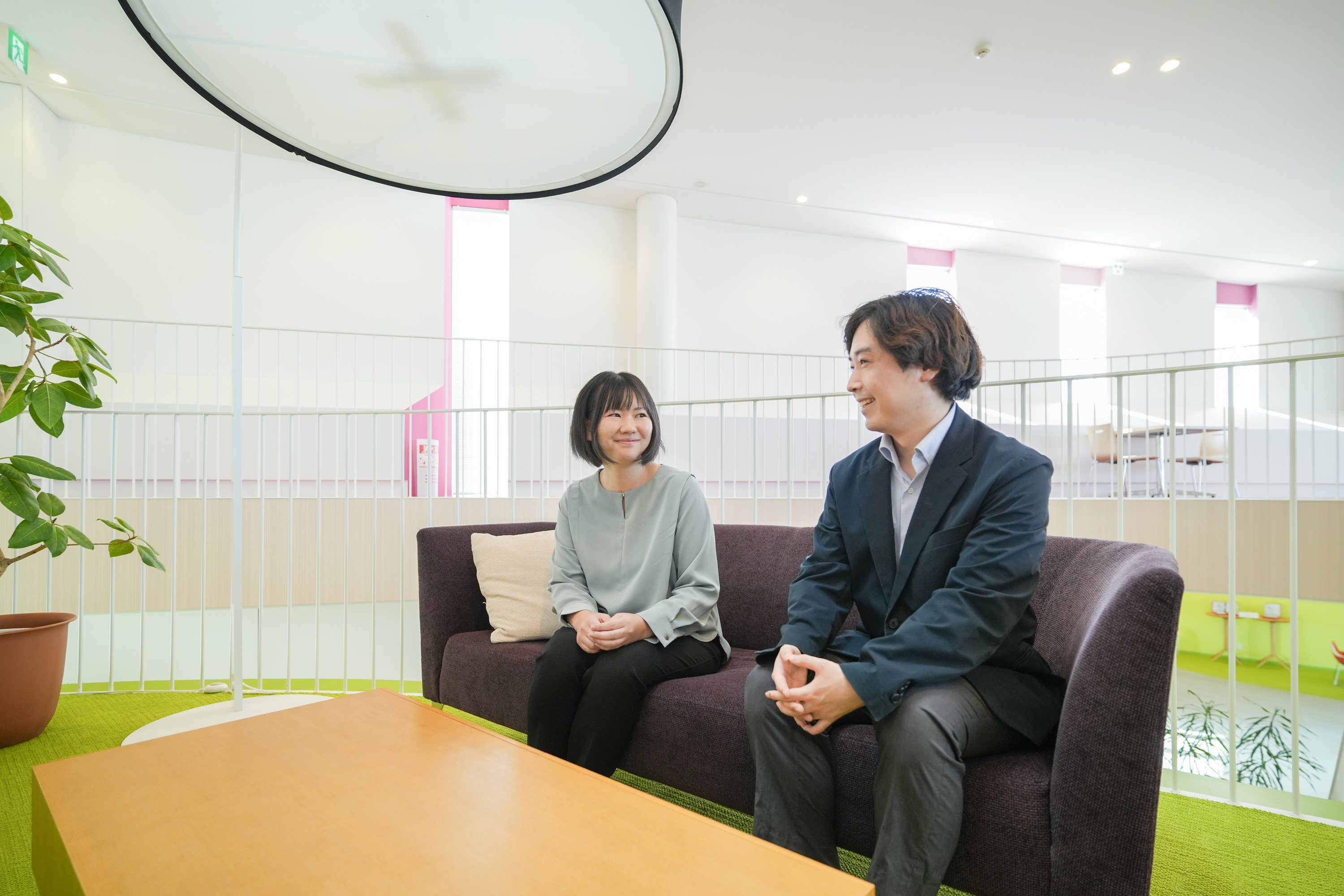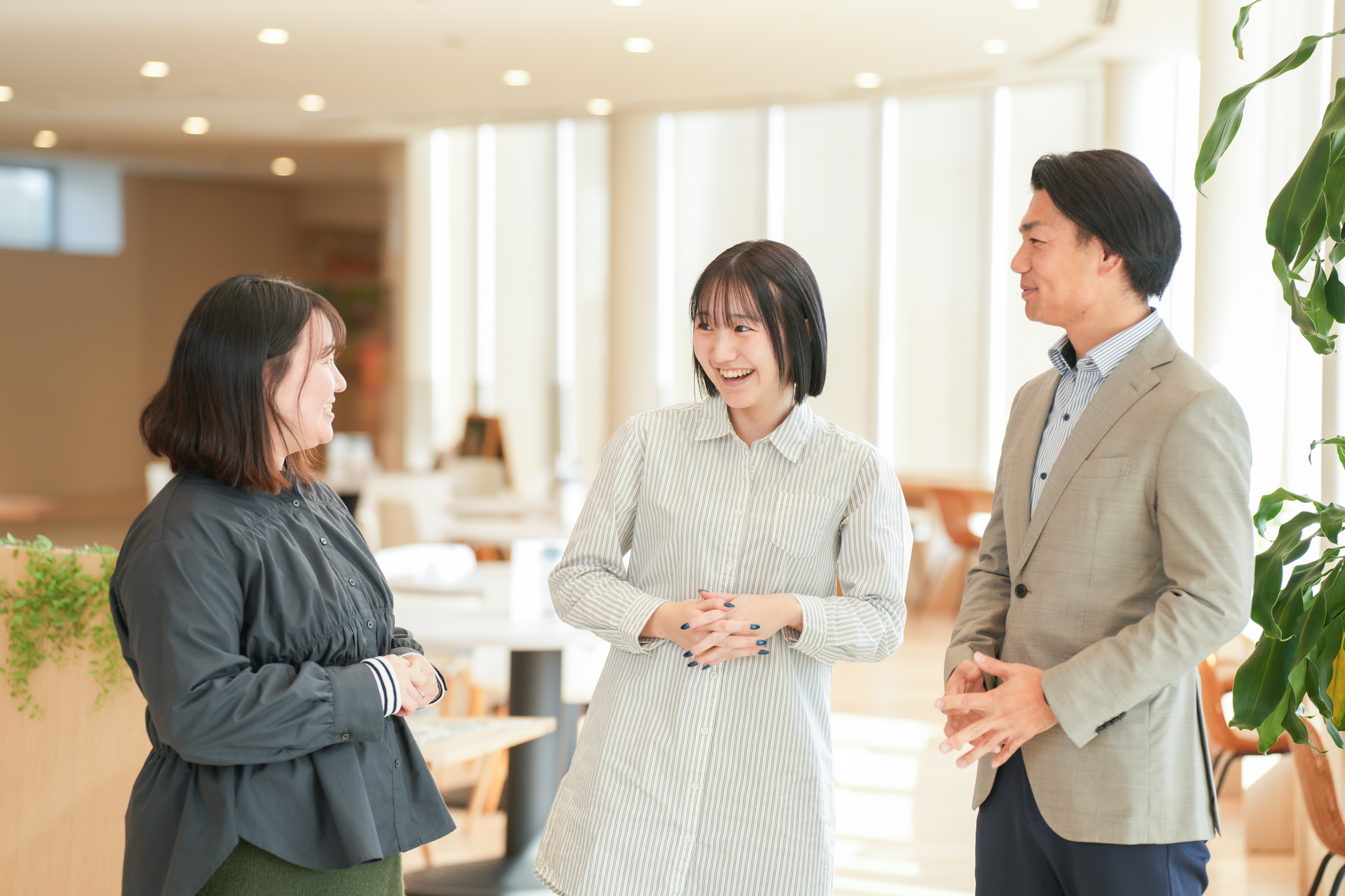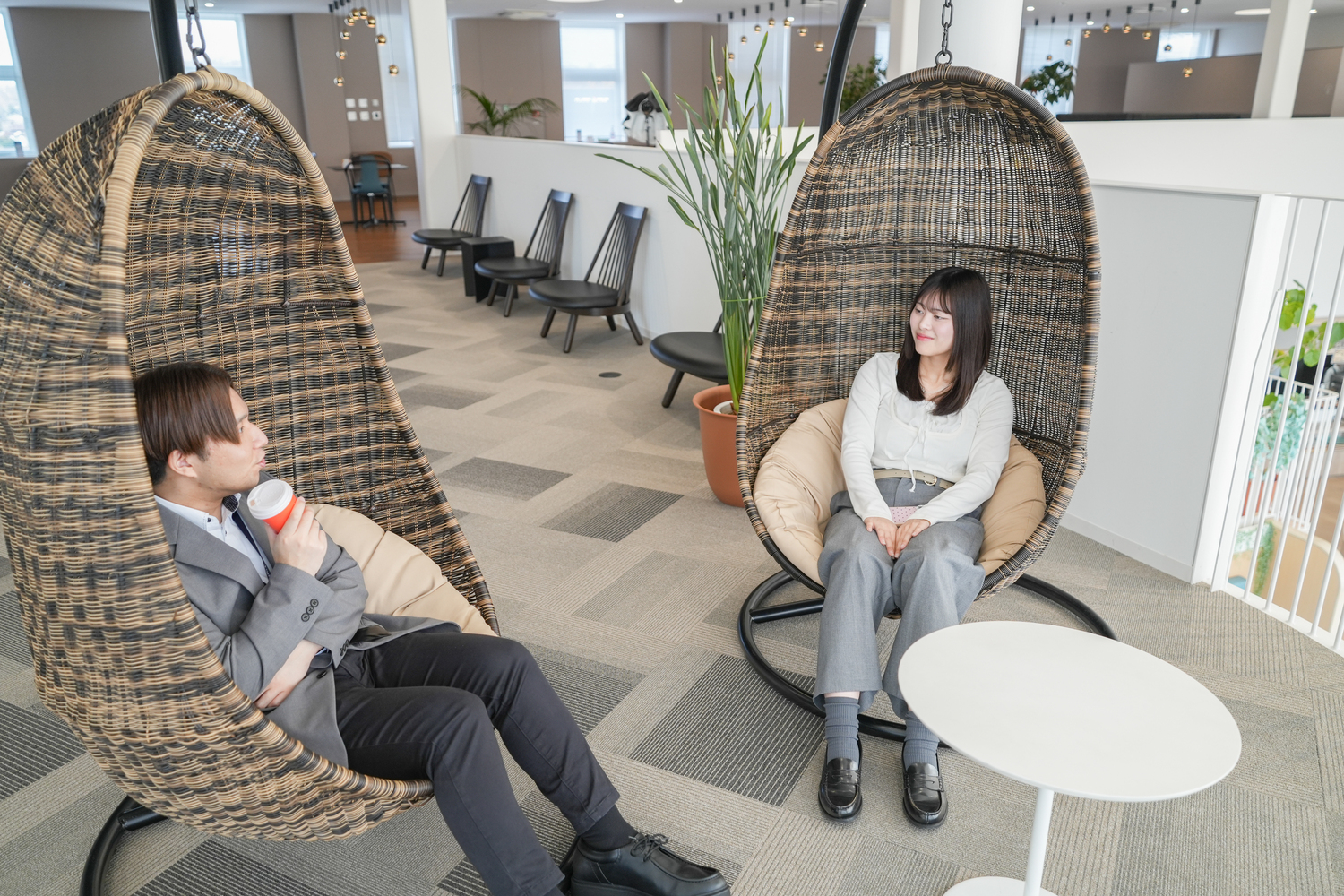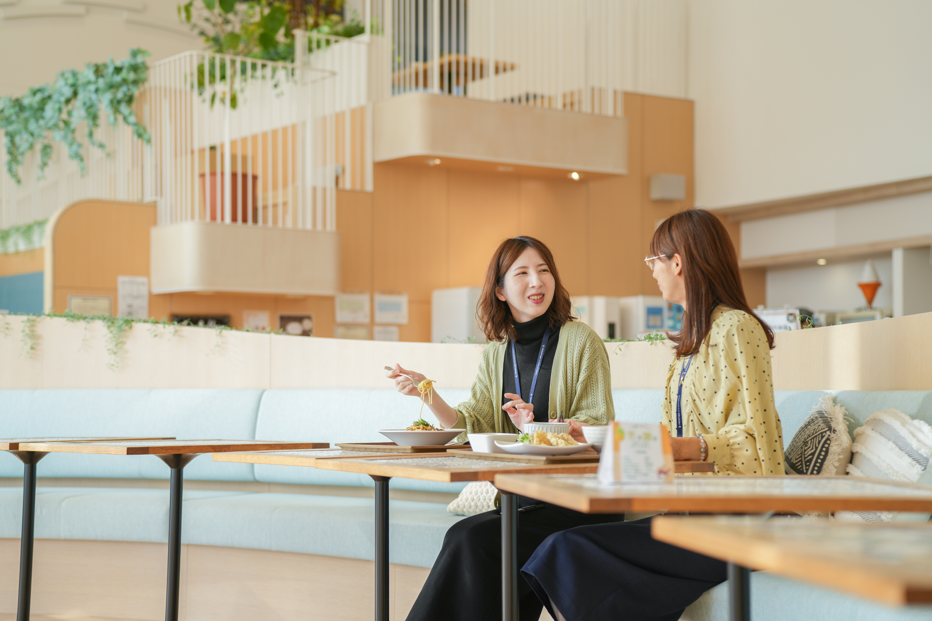 開放的で明るい社内に、カフェテリアや保育園、社員寮、各種自動販売機などを併設しています。その他、休憩スペースも館内に多数設置されていますので、リラックスとリフレッシュがしやすい環境です。こういった目に見える設備面の他、制度面でのワークライフバランスのとりやすさも重視しており、2024年度の平均残業時間は月9時間、平均有休取得日数は年15日間でプライベートも大事にできる環境です。