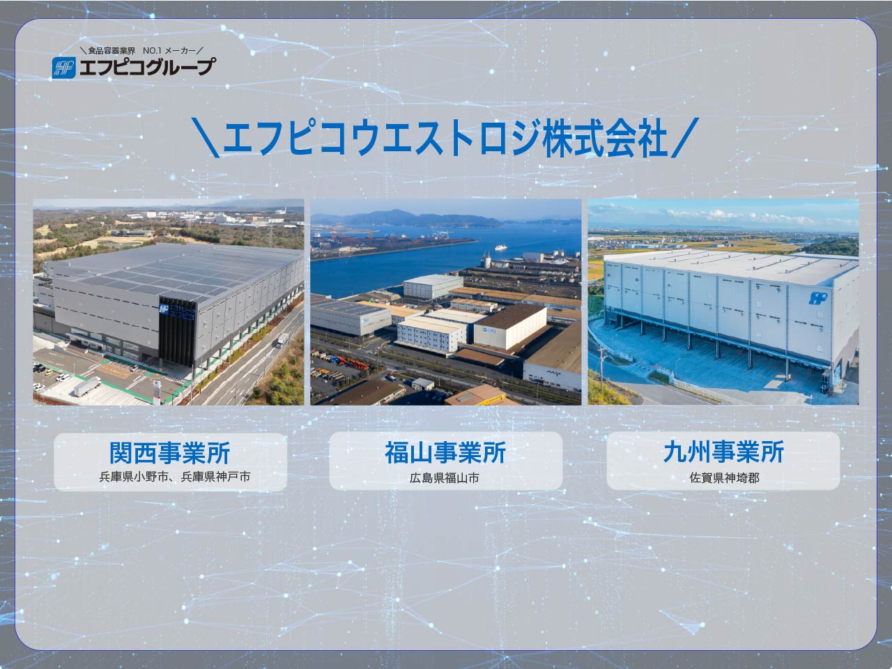 東証プライム市場上場、食品トレー最大手である (株) エフピコのグ ループ会社。エフピコ製品の食品トレー·容器等のピッキング業務 、荷役業務を行う。