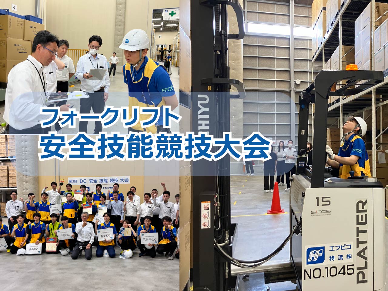 入社時研修、入社1年経過時の研修、リーダー研修など、業務的にも人間的にも成長 できる仕組みがあります。 日々の業務で取り組んだ改善事項は、年1回、「改善発表会」にて、エフピコグループ全社に向けて発表しています。 「改善発表会」は、書類選考、予選会を勝ち抜いた選抜チームが出場。出場をめざして、社内で、創意工夫、切磋琢磨しています。 安全意識や作業品品質の向上、そして普段会話することのない他拠点スタッフとの交流を目的とした 「フォークリフト安全技能競技大会」を開催。 採点項目は、入庫作業、出庫作業の正確性、スピードに加えて、フォークリフト始業点検実施状況など 安全面を重視した内容となっています。 全国大会の出場は、多くのフォークリフトオペレーターの目標となっています。