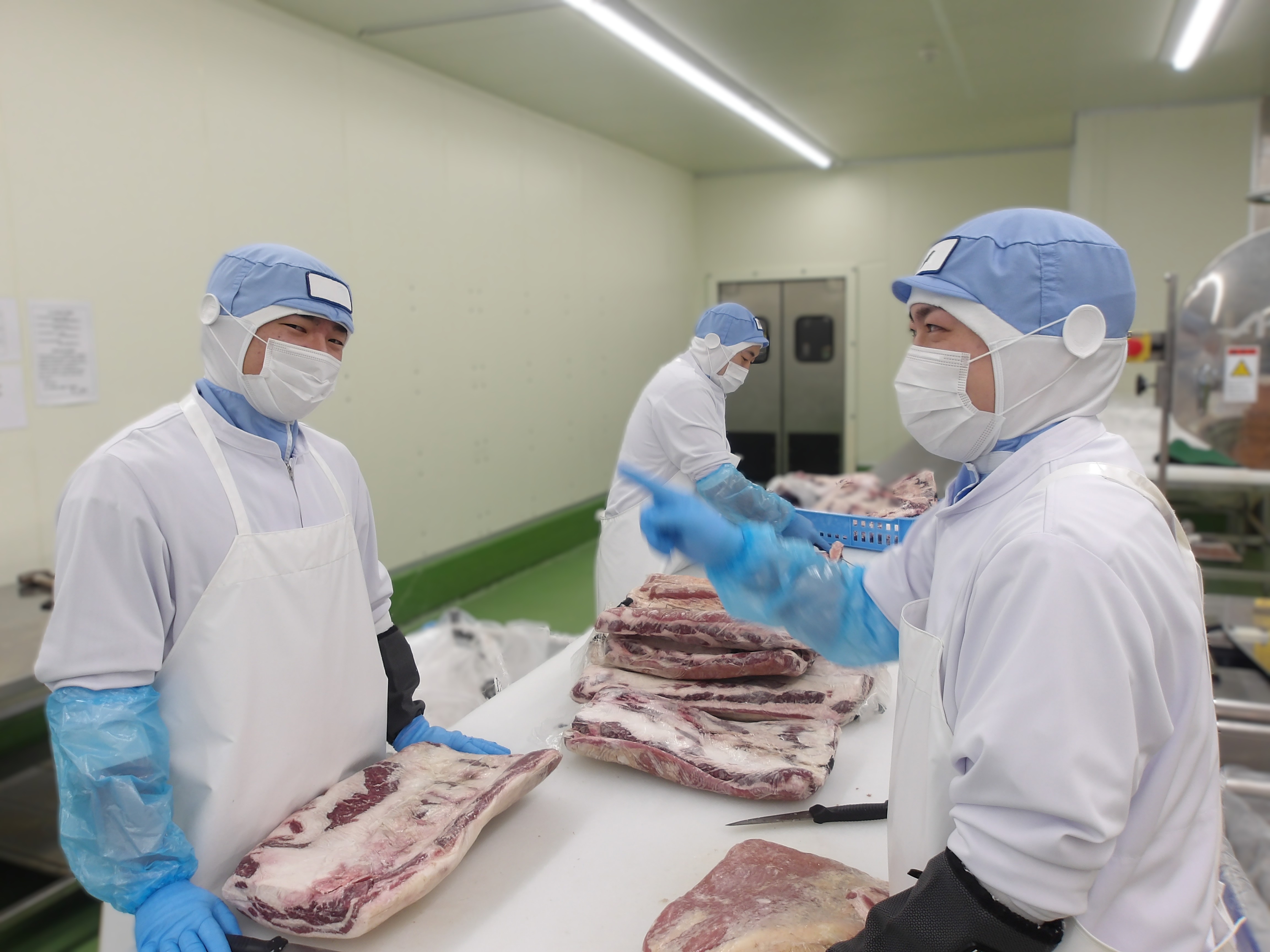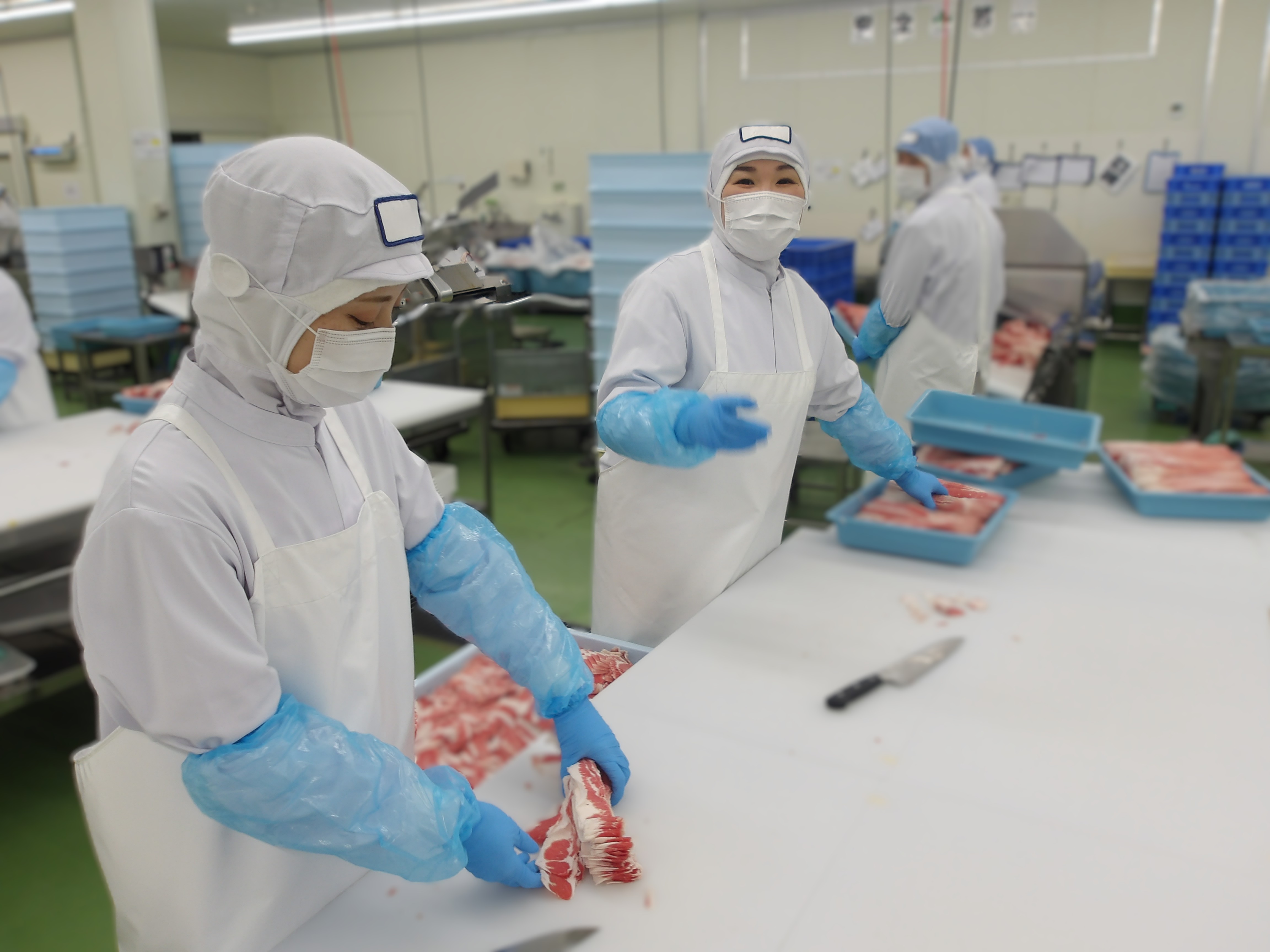 お肉のカットやミンチ加工を行っている工場です。 わたしたちが作ったお肉は、学校給食やレストラン、スーパーの売り場、 さらには冷凍食品の材料として、毎日の食卓を支えています。 また、「SQF」という世界基準の厳しい衛生ルールをクリアしており、 「安全で高品質なおいしさ」を届けることに誇りを持っています。 様々な作業の手順がしっかり決められていますが、先輩社員の指導、サポートを受けながら 一歩ずつ確実にプロのスキルを身につけることができます。 あなたの身近な「おいしい」を裏側から支える、やりがい抜群のお仕事です。