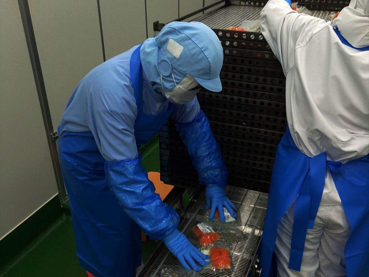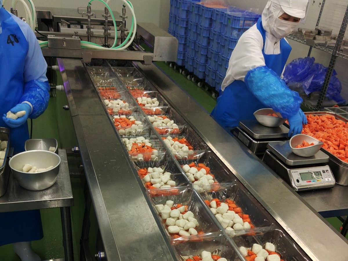 食品加工を行い、ノントレーパック包装で少量パックから対応して 製造しています。また、国際食品製造資格である SQ F を取得して いる工場を保有し、安心·安全の食材をお届けしています。