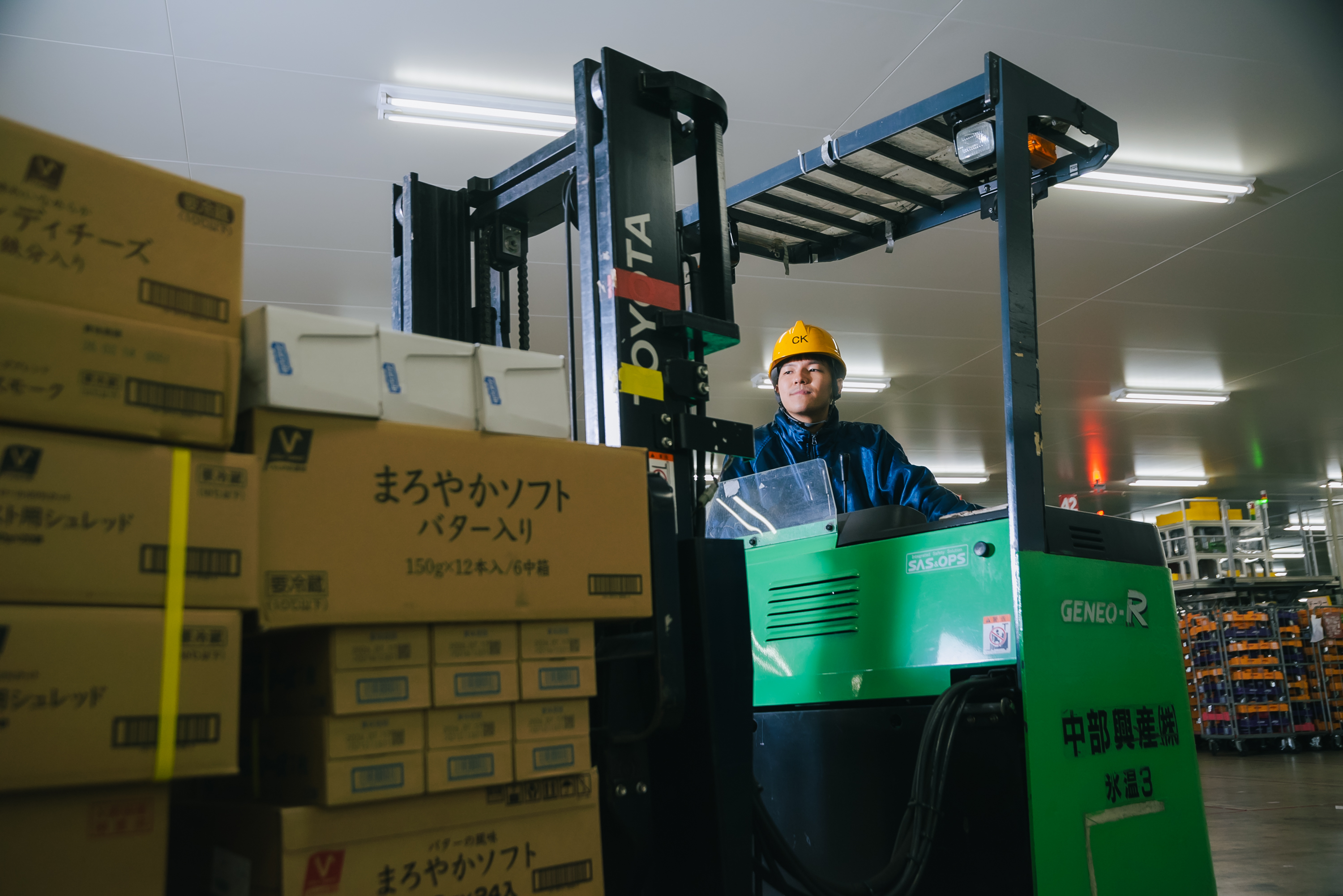 2022年入社 A・Iさん 入社前から物流業界は身体を使う仕事だと思っていましたが、いざ入社してみるとそこまで重労働でもなく、自分のペースで働けました。乗り物に乗ることが趣味なのでフォークリフトの操作が得意です!フォークリフトを使っての商品の運搬や在庫の整理は仕事の中でも楽しめる瞬間です。