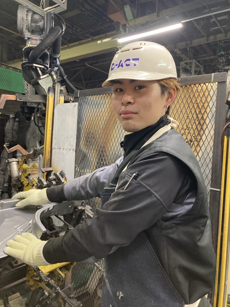 2025年入社 *ディーアクトを選んだ一番の決め手! ディーアクトに決めた1番の理由は、応募前見学で先輩が新人に丁寧に教えている姿や活き活きと働いている姿を見て「自分もここで働きたい!」と思ったことが大きなきっかけです。 入社してからも、分からないことや間違っていることは丁寧に教えてくれ、仕事が終わると楽しくお話しをしたり、安心して相談できる方も多く雰囲気が良いです。また、作業に慣れてスピードが上がると先輩に褒めてもらえることがうれしくやりがいを感じています。 *求人票で重視していた点 給与やボーナスの待遇と年間の休日日数をチェックし、安定して働けるのかを大切に選定していました。 入社後も期待通りで満足しています。◇夜勤に入ると夜勤手当がしっかりつくのでお勧めです!※夜勤・残業・休日出勤は法定で決まっている割増賃金の5%上乗せで給与となる為、ものすごくよいです。 *仕事内容 組立ラインで、治具に部品をセットしロボットを起動、できあがりをチェックして次の作業者に渡す流れを担当しています。 福利厚生が充実しておりフレンドリーな会社です♪