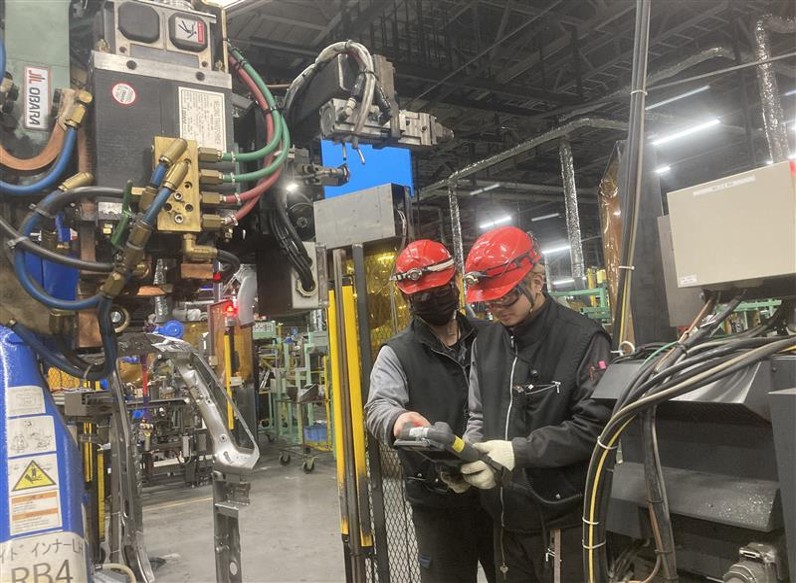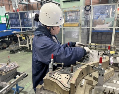 プレス機で鉄板を成形して、ロボット溶接機で成形された部品を溶接して、骨格部品を作っています。 ◇製造オペレーター ①大型プレス機械での金属成形業務関わる全ての業務 クレーンを使用した金型段取り・金型の保守メンテナンス 定点出来栄え品質確認・生産性向上改善業務 金型メンテナンス(保全) ②自動溶接ロボットを使用した部品組立に関わる全ての業務 組立治具への部品セット・完成品の品質確認 納入部品の仕分け・牽引車を使用した工程への部品供給 定点出来栄え品質確認・生産性向上改善業務 溶接条件設定業務(最適化推進) ◇生産技術職:生産設備(プレス機・ロボットなど):保守業務を担っていただきます。 生産設備の安定稼働対応(定期点検、故障修理、再発防止など) 設備立上げ(生産能力確保、国内外拠点立ち上げ支援) 優しい先輩が丁寧に教えてくれますよ♪