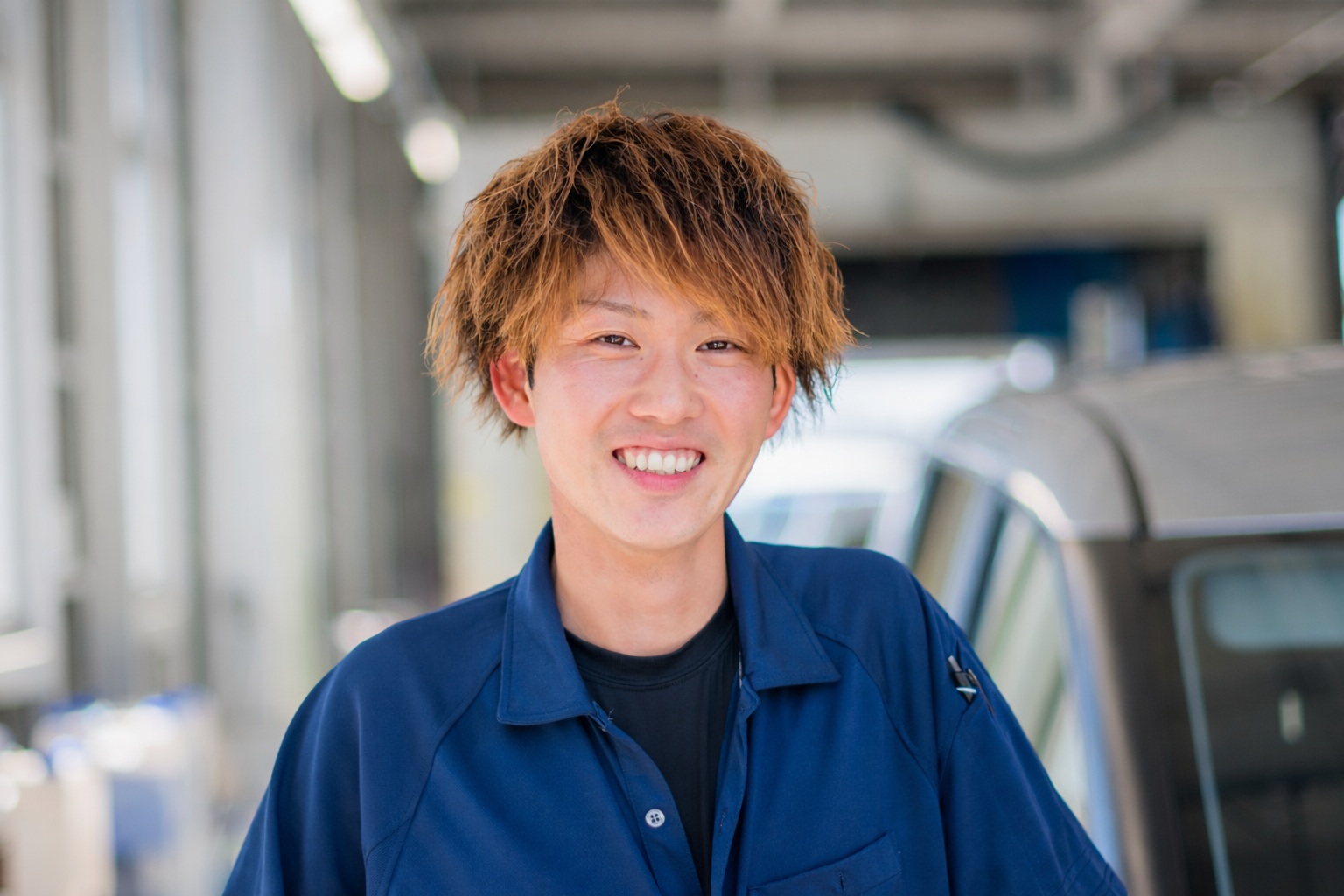 Q. 入社のきっかけは? 車に関わる仕事がしたいと思い、いろいろな車に触れられる点に魅力を感じて入社しました。体を動かすことも好きで、自分に合っている仕事だと思ったのがきっかけです。 Q. 現在の仕事内容を教えてください 現在は責任者として、現場全体の進行管理や最終チェックを担当しています。車の品質を保つことはもちろん、スタッフが安全に働けるように声かけやフォローを行うのも大切な役割です。 Q. 仕事のやりがいは? 繁忙期には多くの車をチームで仕上げていきますが、やり切ったときの達成感はとても大きいです。また、自分が関わった車をお客様に安心して利用していただけることに、大きなやりがいを感じています。 Q. 責任者になって感じたことは? 自分の作業だけでなく、チーム全体を見る立場になったことで責任は増えましたが、その分やりがいも大きくなりました。スタッフ一人ひとりの成長を感じられるのも、この仕事の魅力です。 Q. 高校生へのメッセージ 最初は誰でも未経験です。できることから少しずつ覚えていけば大丈夫。体を動かすのが好きな人や、コツコツ頑張れる人にはぴったりの仕事です。一緒に成長していきましょう!